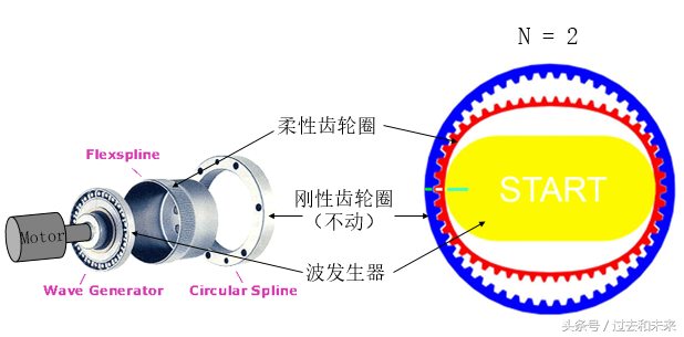 波发生器转一圈,柔性齿轮圈移动N个齿轮位