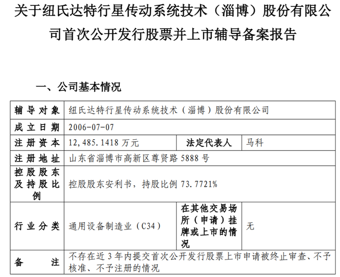 瑞财经 王敏 12月3日,纽氏达特行星传动系统技术(淄博)股份有限公司(以下简称“纽氏达特”)在山东证监局启动IPO辅导备案,辅导机构为东方证券。